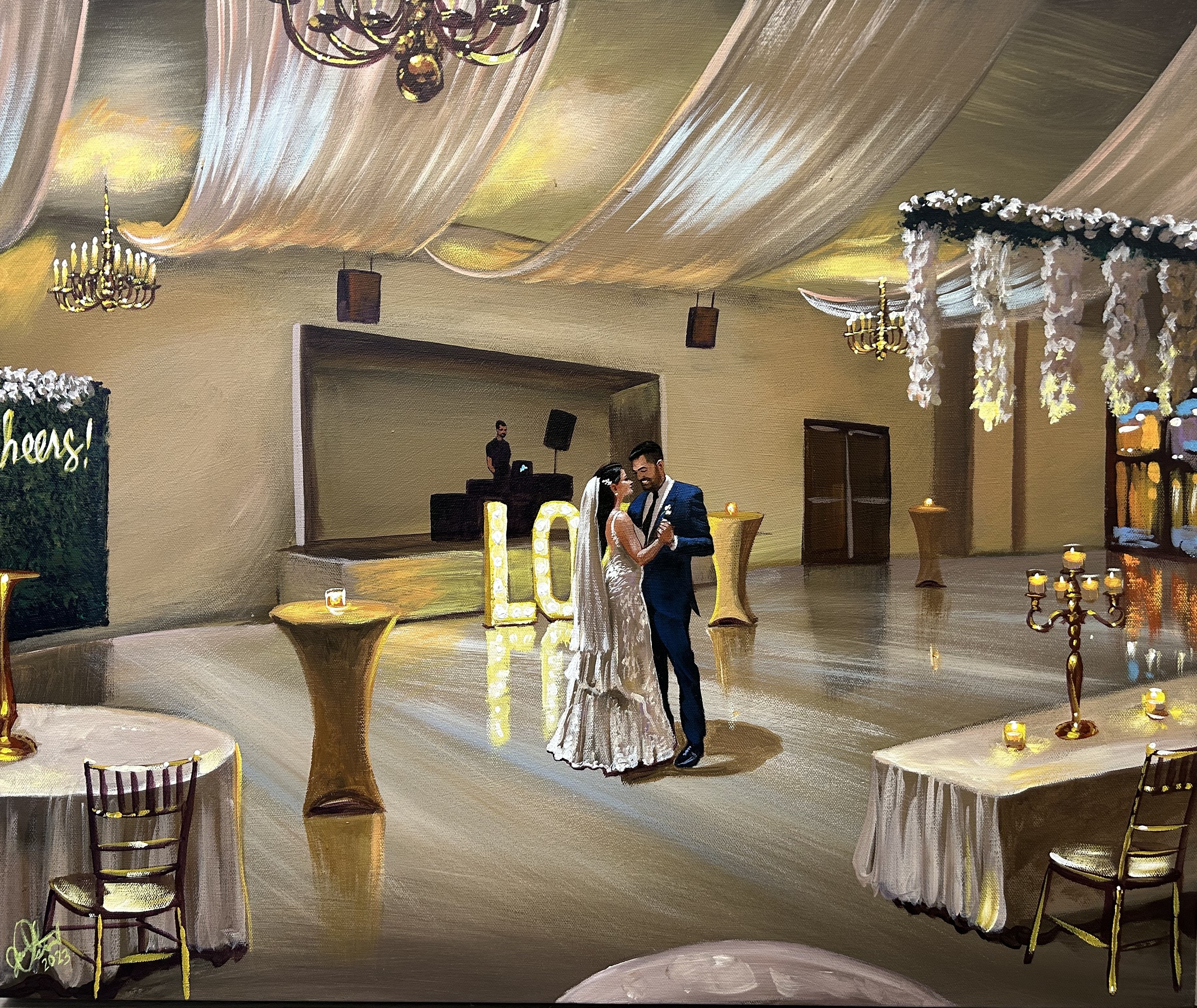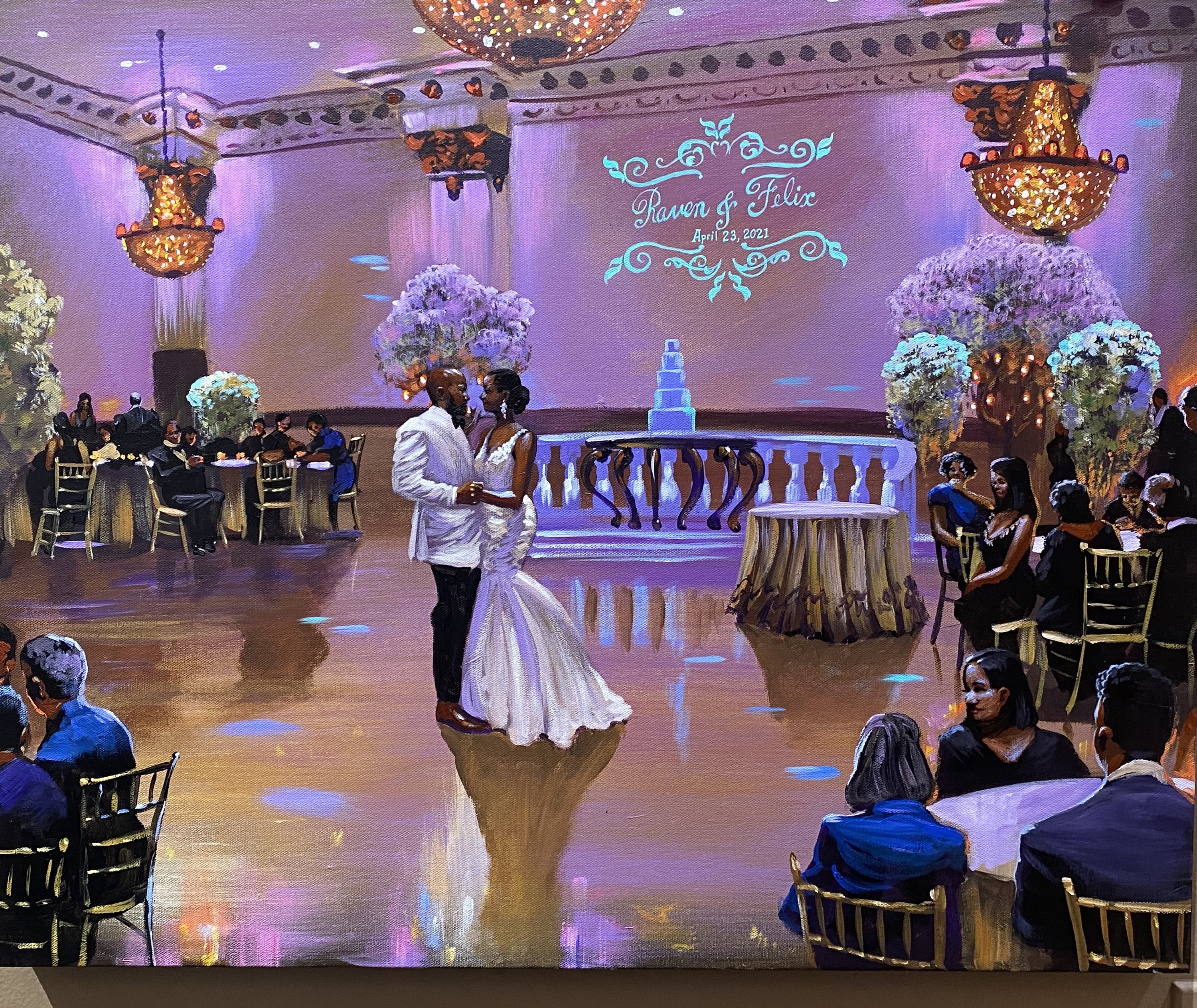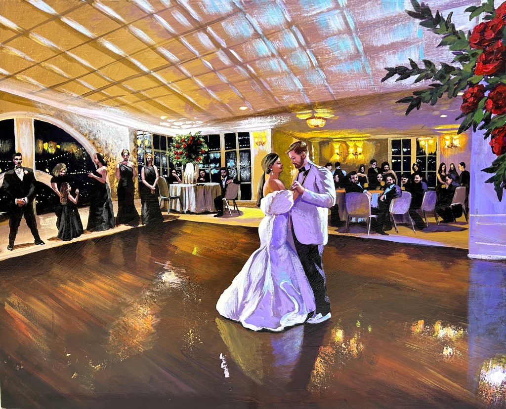 “Weddings and other once-in-a-lifetime events are the kind of special experiences that can live on in our memories for a lifetime. My promise to each of my clients is to capture in my paintings not just the feeling of your event, but the details and faces that make that event truly and individually yours. Let me turn your special day into a masterpiece.”